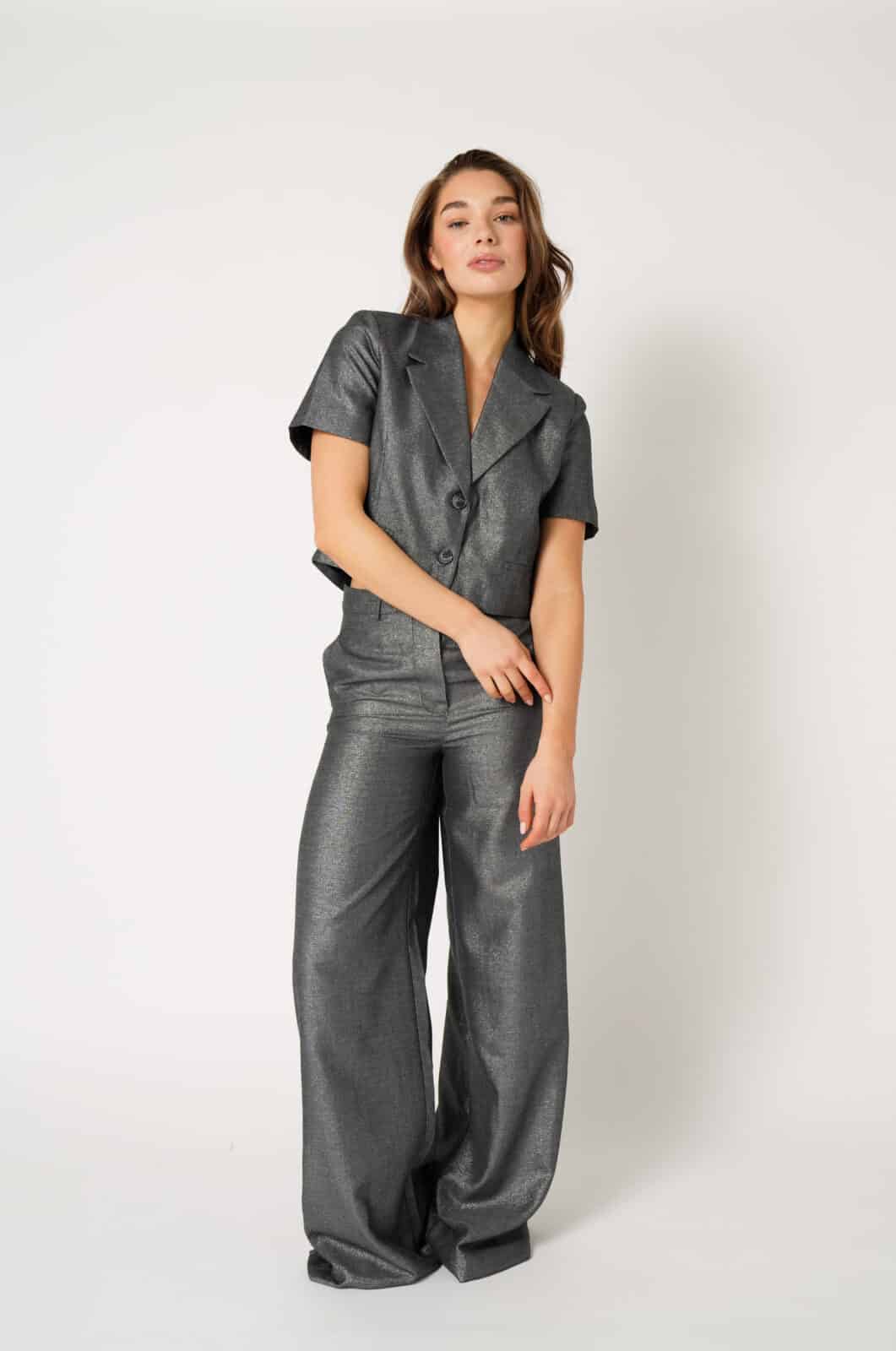 Materiaal: 65% polyester, 32% viscose, 3% metalic.