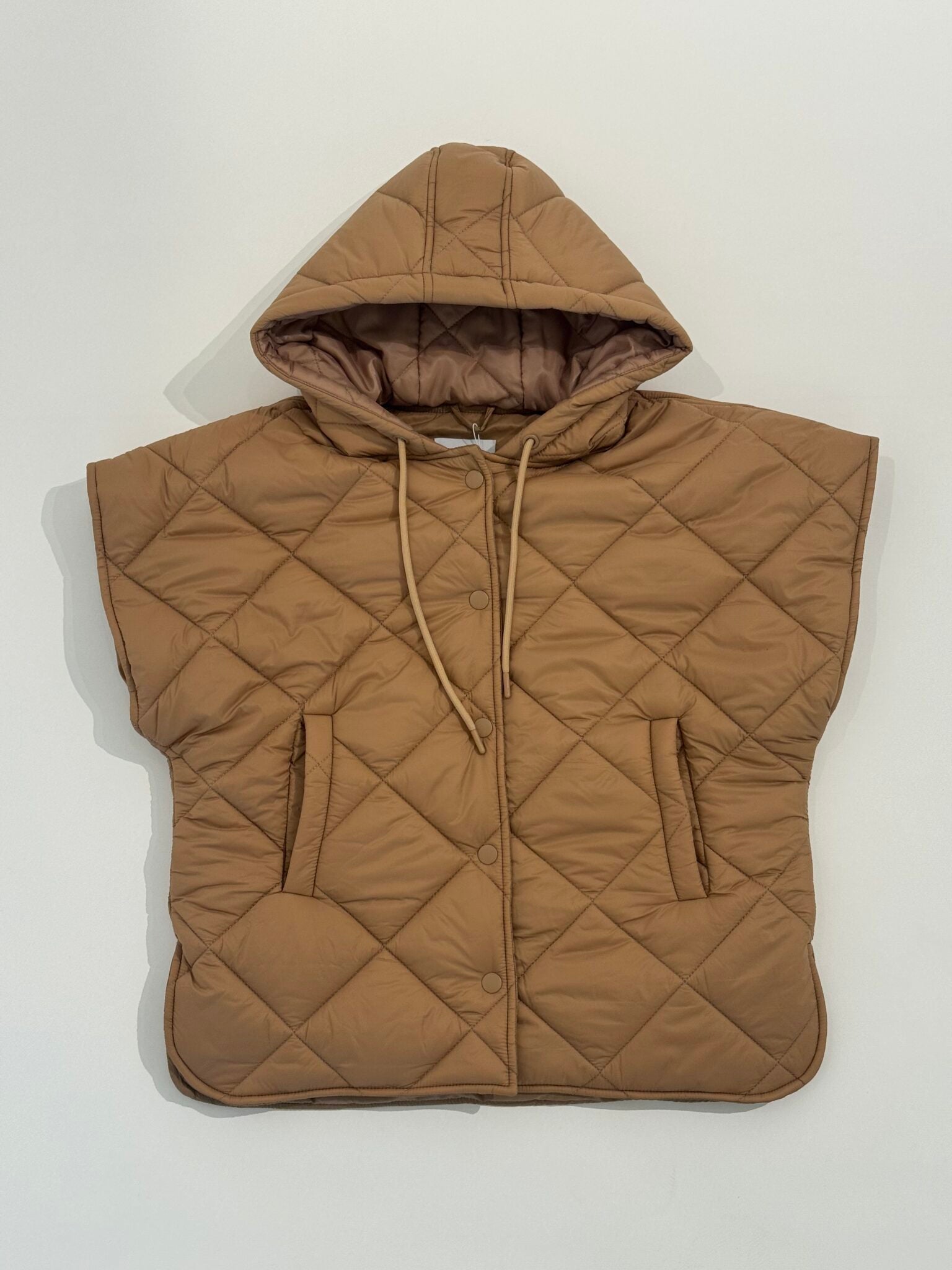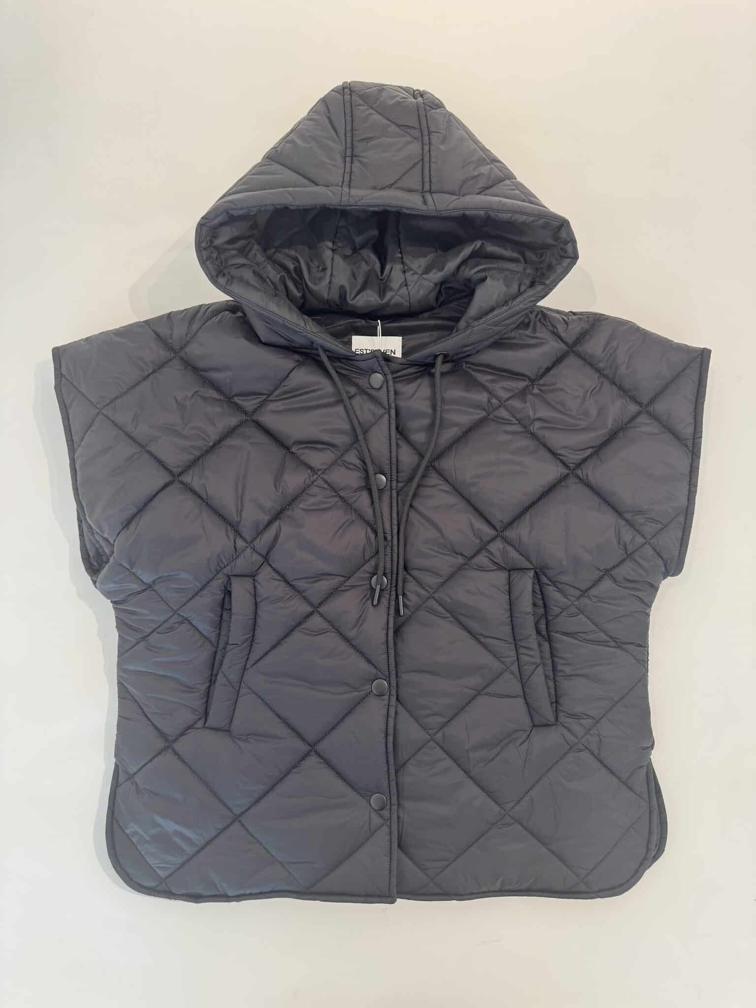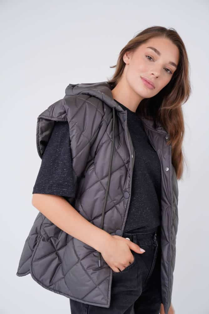 Gewatteerde bodywarmer met cappuchon.