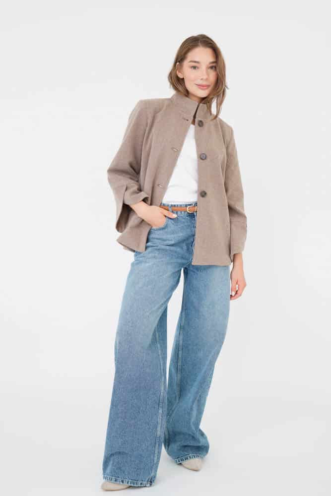 Jasje met een accent aan de mouw en een recht opstaand boordje.