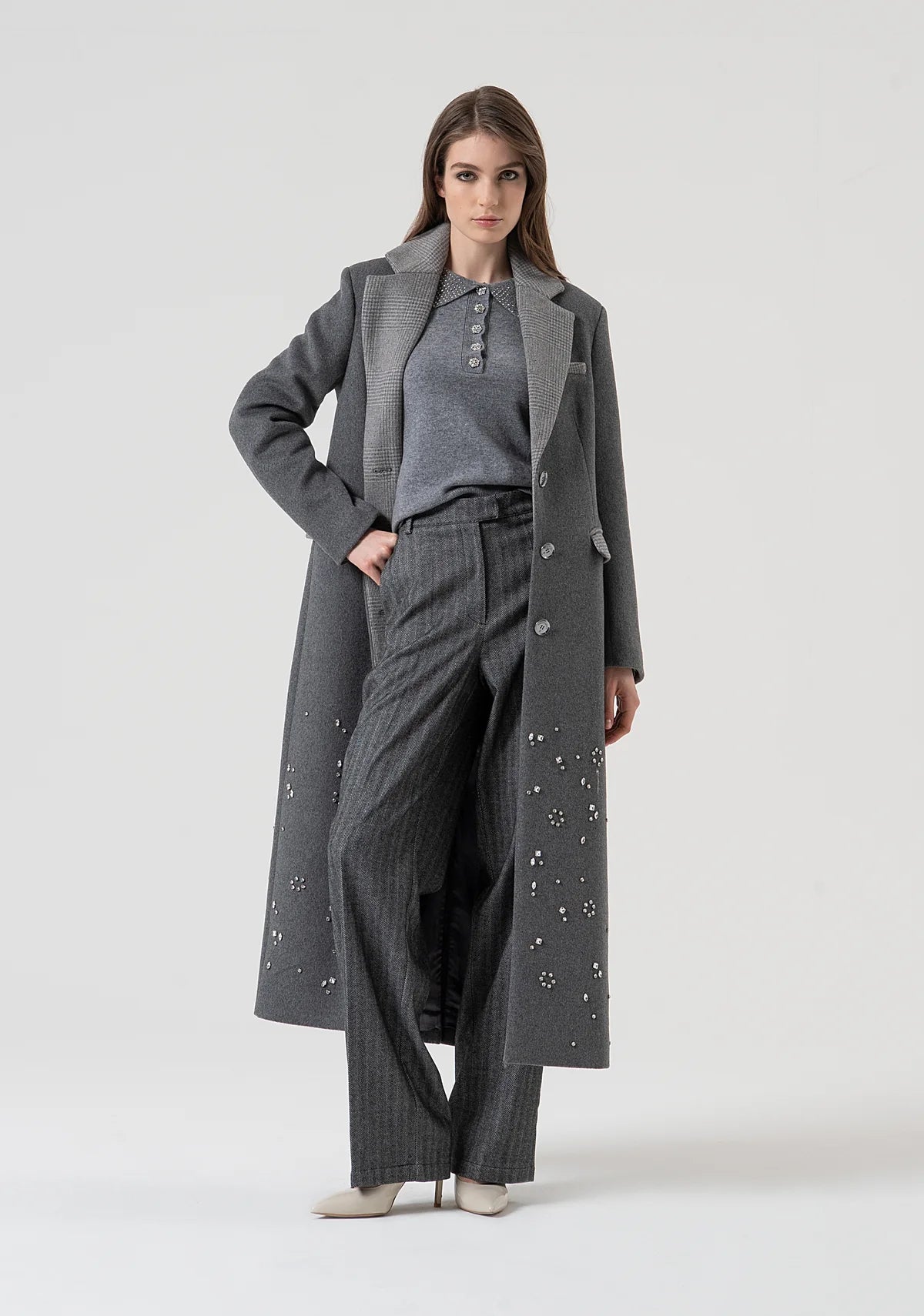 Gebreide polo in regular fit, gemaakt van wol en cachemire. Klassieke hals met strass-details, sierknopen in het midden en lange mouwen.