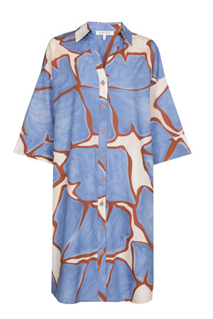 Zomers dessin hemdjurkje. Deze vrolijke jurk met bloemenprint is een handige aanvulling op je zomergarderobe. Op een feestje of op kantoor, je kan er altijd mee door.