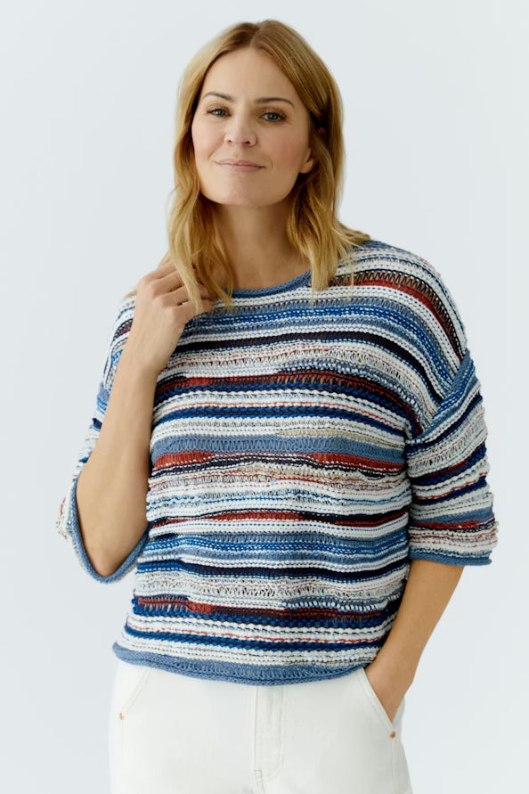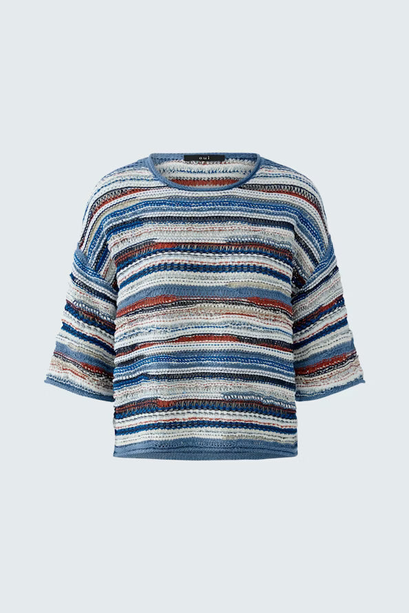 - Uitgebreide garenmix in strepen met een onregelmatige 3D-structuur